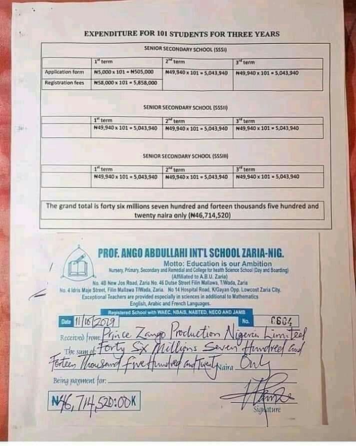 Sama da yara marayu 100 da marasa gata shah a tartan dan wasan hausa Adam A Zango ya biya wa kudin karatu kimanin Naira miliyan 46 a Jihar Kaduna.